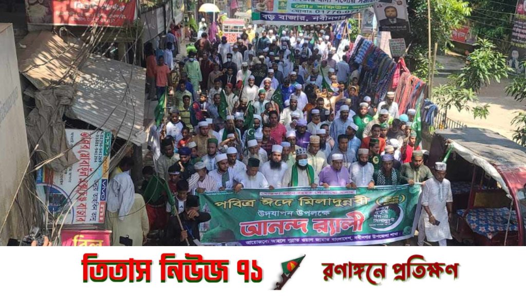 বৃহস্পতিবার (২৮/০৯/২০২৩ ইং) সকালে উপজেলা আহলে সুন্নাত ওয়াল জামাতের উদ্যোগে শহরে বিপুল সংখ্যক ধর্মপ্রাণ মুসল্লিদের অংশগ্রহনে একটি জশনে জুলুস বের হয়। জুলুসটি নবীনগর পৌর সদরের বিভিন্ন সড়ক প্রদক্ষিণ করে নবীনগর সরকারী পাইলট বিদ্যালয় প্রাঙ্গনে গিয়ে শেষ হয়।